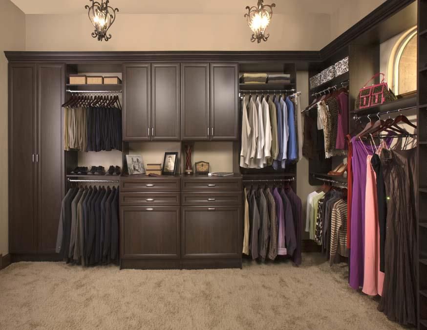 The next step in developing your dream closet is to layer the look by adding decorative elements such as crown molding, base molding, fluted moldings, and other unique aesthetic features. First Class upgrades are available to include unique colored or etched glass inserts for the closet doors and for countertops using granite slabs.